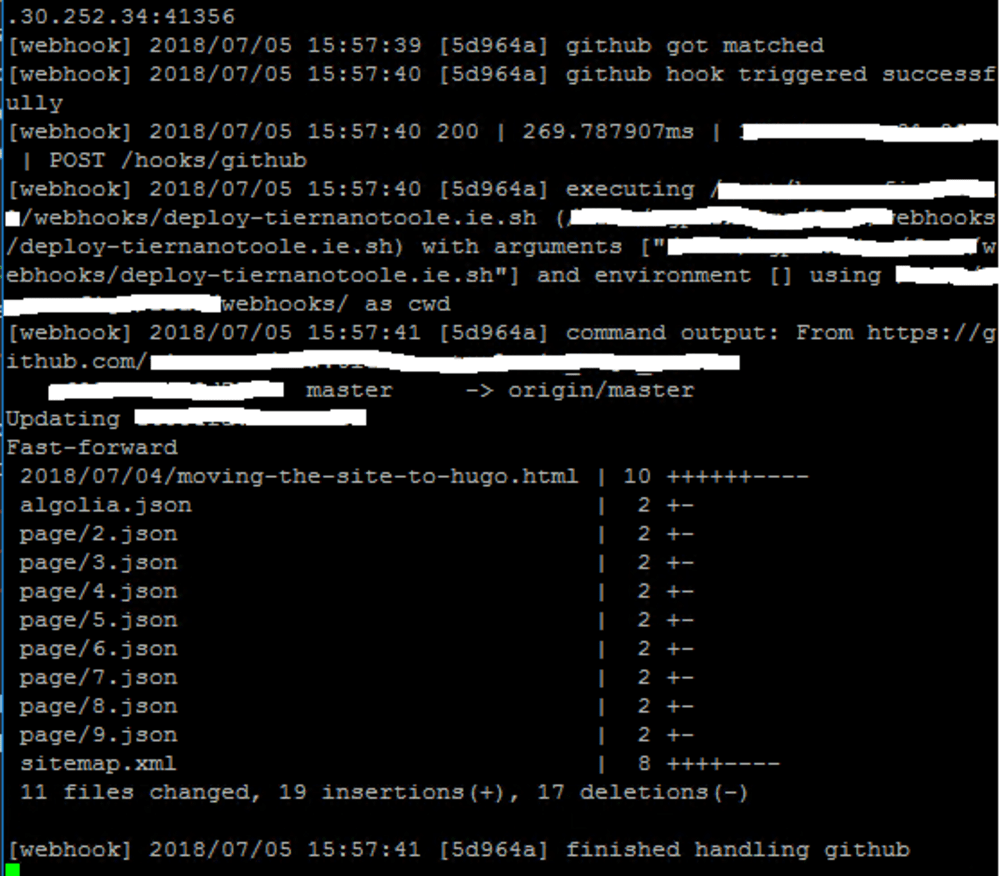 First, Download the Webhook project (its a Go application, so it works pretty much anywhere). Copy it somewhere on your machine. Next, you need a config. I used the Github sample config from the project site and made tweaks to what script to run and what i was passing in.